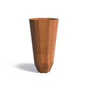 Dieser besondere Cortenstahl-Pflanzkübel besticht durch sein diamantartiges Design und verleiht dem Außenbereich eine extravagante und moderne Ausstrahlung. Durch den warmen, rostbraunen Farbton des Cortenstahls kommt die geometrische Form besonders gut zur Geltung. Die natürliche Rostschicht, die sich durch Witterungseinflüsse bildet, macht jedes Exemplar zu einem Unikat. Cortenstahl – auch bekannt als wetterfester Stahl – ist äußerst robust, langlebig und pflegeleicht. Der Pflanzkübel kann problemlos ganzjährig im Freien stehen und wird mit der Zeit immer schöner.
