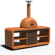 De Station DOME van Forno is speciaal ontworpen als robuuste onderkast voor de Forno DOME oven. Dankzij het extra diepe ontwerp staat de oven stabiel en op werkhoogte. De combinatie van 2 mm dik cortenstaal met bamboe accenten zorgt voor een warme en natuurlijke uitstraling die perfect past bij een moderne buitenkeuken.