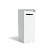 De bezorger opent het deksel en plaatst het pakket in de inwerpopening. Zodra het deksel sluit, valt het pakket automatisch naar beneden in het afgesloten compartiment. Via de afsluitbare deur aan de achterzijde kun je jouw post en pakketten veilig en gemakkelijk uitnemen.